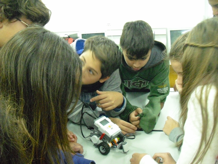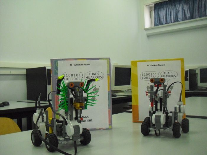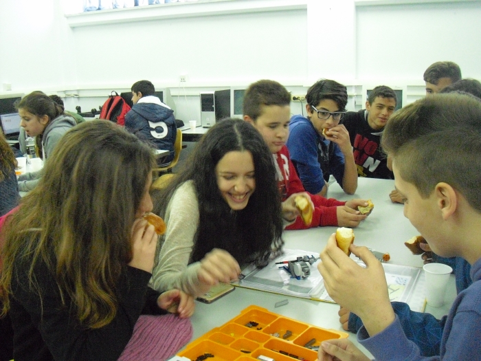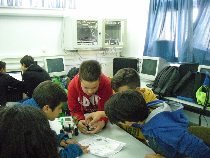 Οι μικροί, αλλά αξιόλογοι, επιστήμονες της γειτονιάς μας έρχονται κάθε Παρασκευή μόλις σχολάσουν και μένουν στο εργαστήριο του Λυκείου για περίπου 2 ώρες παλεύοντας να κατασκευάσουν και να προγραμματίσουν ρομποτάκια με υλικά Lego.