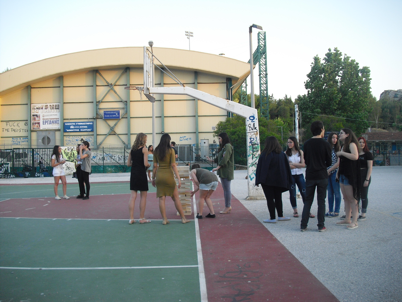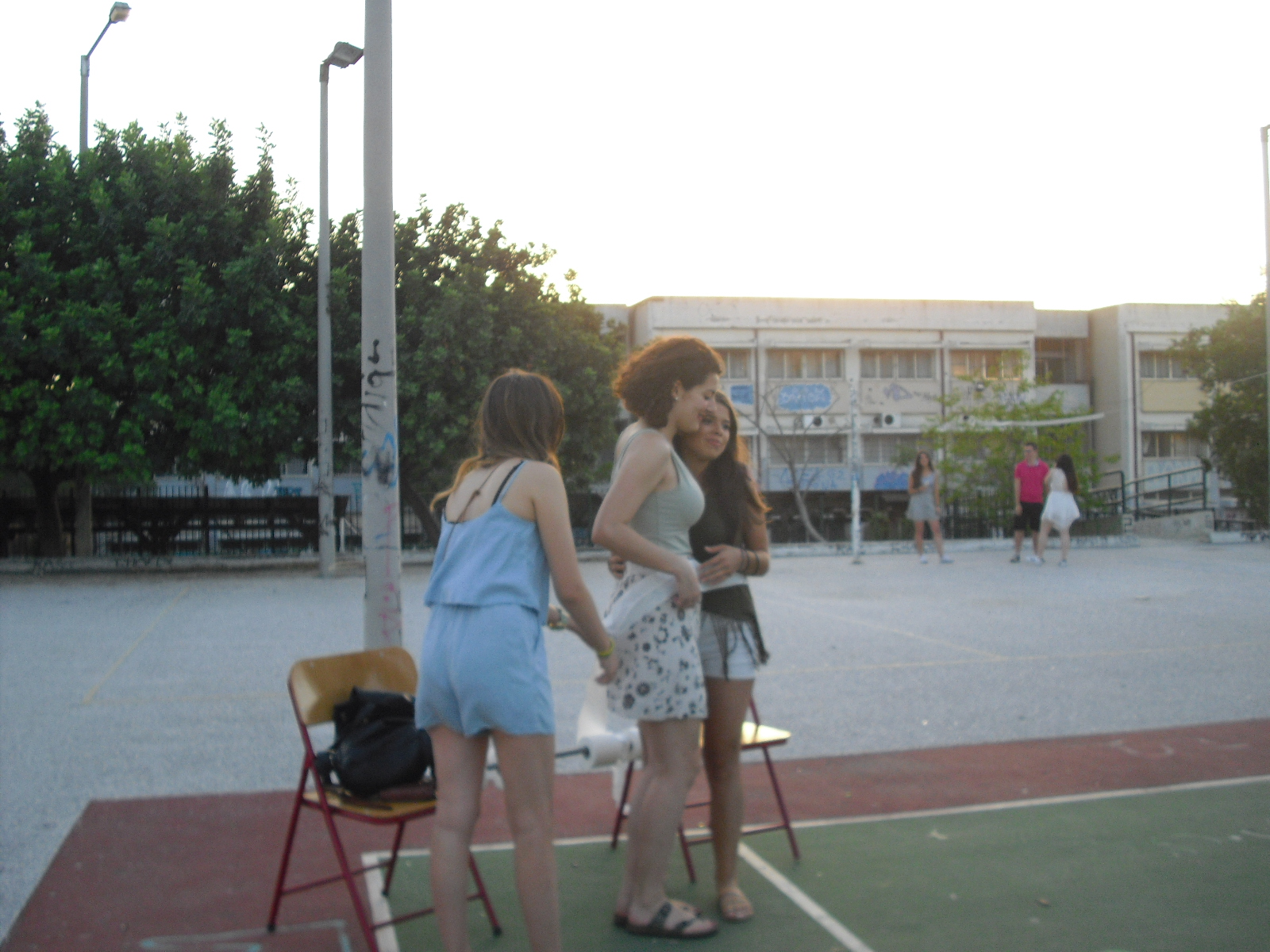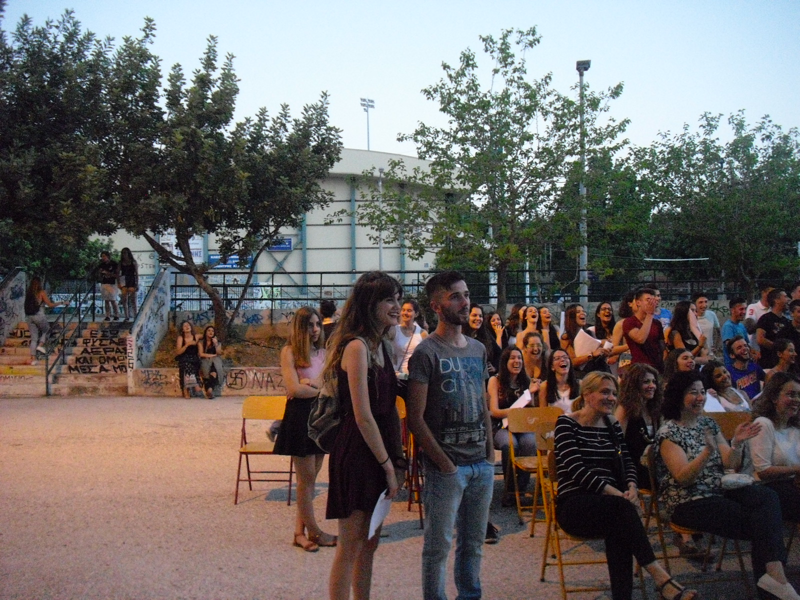 Δεν έχει ακόμη σκοτεινιάσει και σιγά σιγά μαζευόμαστε για την γιορτή που ετοίμασαν οι μαθητές της Γ τάξης, για να αποχαιρετίσουν το σχολείο που τους φιλοξένησε και στο οποίο έδωσαν το δικό τους χρώμα, τα τελευταία τρία χρόνια. Ή μάλλον, για να είμαστε πιο ακριβείς: πρόσθεσαν το δικό τους χρώμα σε αυτό όλων των άλλων μαθητών, μεγαλύτερων και μικρότερων, ώστε κάθε χρονιά να προκύπτει ένα φρέσκο, καινούργιο σχολικό περιβάλλον, το οποίο σε προσκαλεί (είτε μαθητής είσαι, είτε καθηγητής) να το εξερευνήσεις!