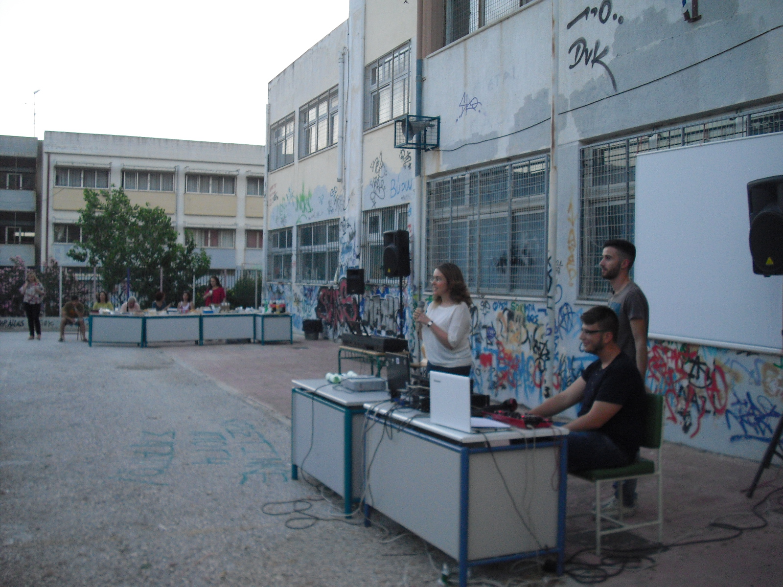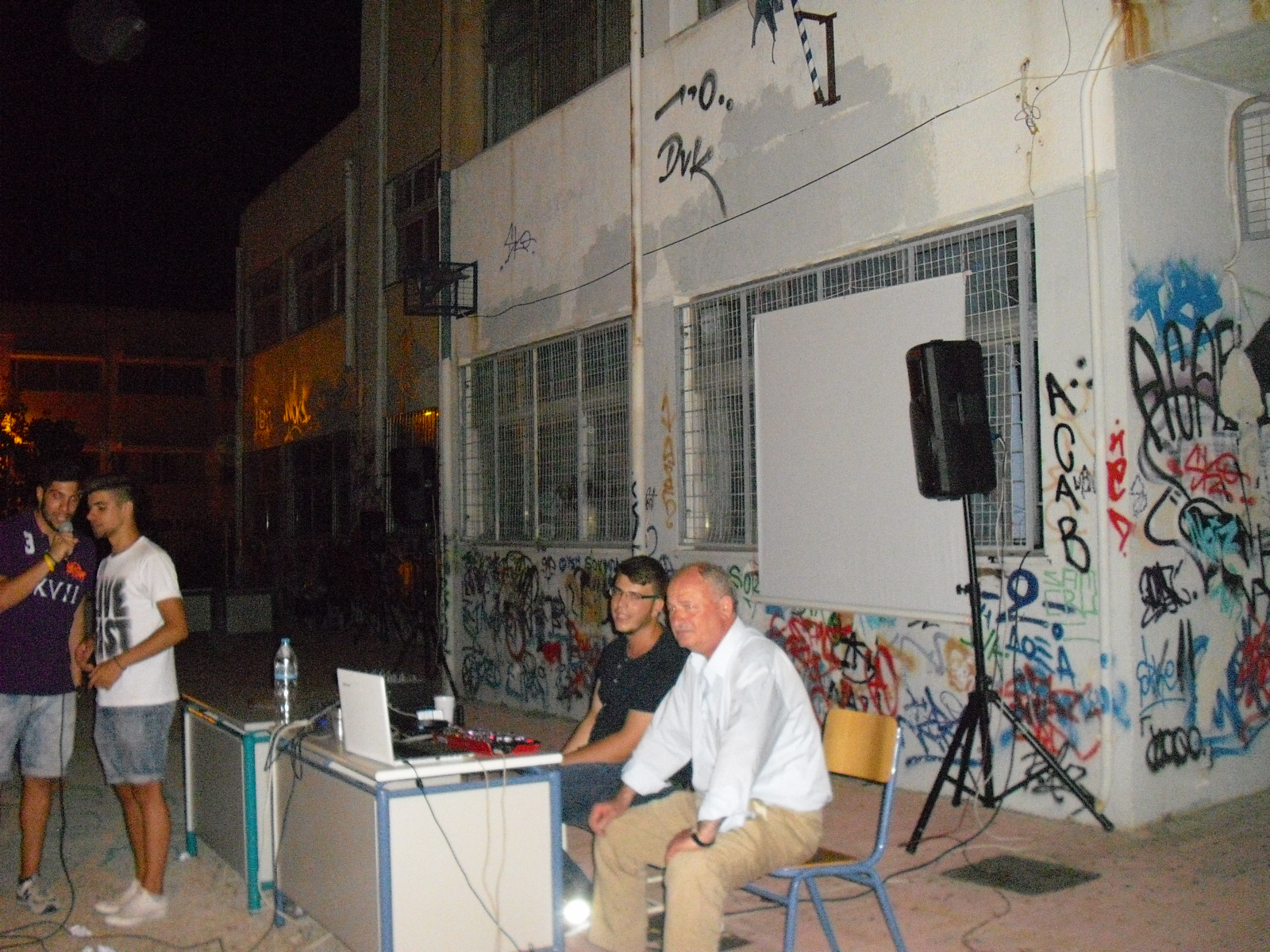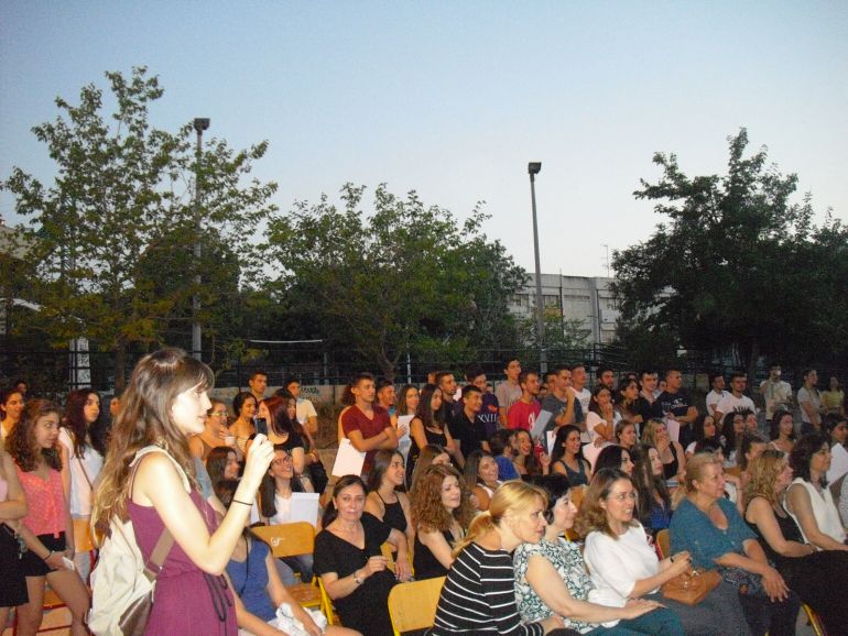 Δεν έχει ακόμη σκοτεινιάσει και σιγά σιγά μαζευόμαστε για την γιορτή που ετοίμασαν οι μαθητές της Γ τάξης, για να αποχαιρετίσουν το σχολείο που τους φιλοξένησε και στο οποίο έδωσαν το δικό τους χρώμα, τα τελευταία τρία χρόνια. Ή μάλλον, για να είμαστε πιο ακριβείς: πρόσθεσαν το δικό τους χρώμα σε αυτό όλων των άλλων μαθητών, μεγαλύτερων και μικρότερων, ώστε κάθε χρονιά να προκύπτει ένα φρέσκο, καινούργιο σχολικό περιβάλλον, το οποίο σε προσκαλεί (είτε μαθητής είσαι, είτε καθηγητής) να το εξερευνήσεις!