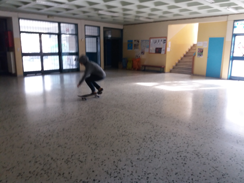 Κι εναλλακτικά, λίγη κίνηση στον εκκωφαντικά άδειο χώρο του σχολείου, μιας και είναι αργά το απόγευμα και η δουλειά δεν έχει τελειώσει!