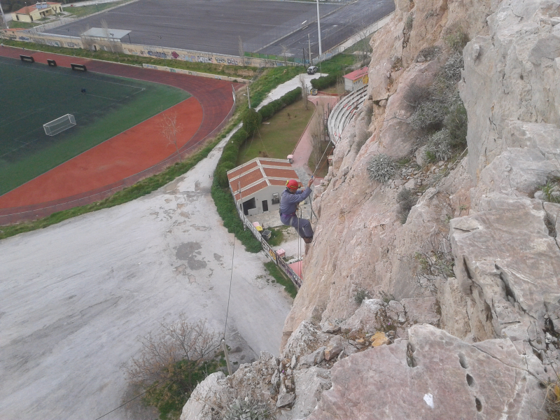 Και δυστυχώς μας αποτρέπει από το να προβλέψουμε πιθανές επιπλοκές. Αποφασίζουμε να ρίξουμε το αλεξίπτωτο από το Θέατρο Βράχων. Ε, και το επόμενο βήμα θα ήταν, ναι καλά διαβάσατε ΘΑ ήταν ο Υμηττός. Δεν φτάσαμε όμως ποτέ εκεί. Εδώ στιγμιότυπα από την επιχείρηση απελευθέρωσης του αλεξίπτωτου, το οποίο λειτουργώντας ως έρμαιο του ανέμου, πήγε και πιάστηκε σε κάτι φυτά πάνω στον βράχο.