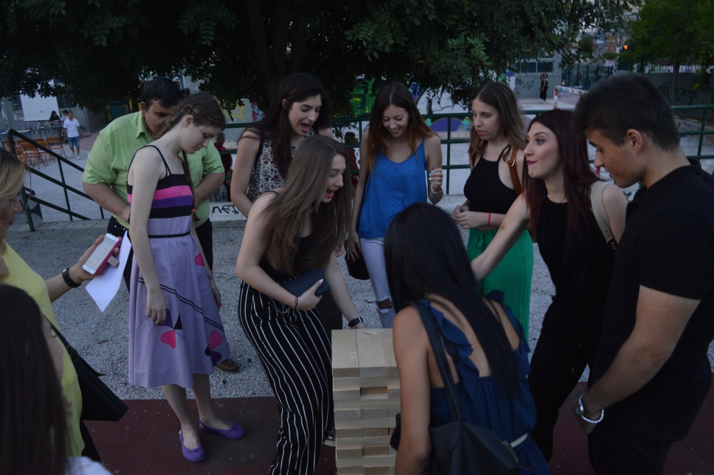 Δοκιμασία Νο 3: Jenga! και πόσα από τα τεράστια τουβλάκια μπορεί η κάθε ομάδα να αφαιρέσει σε χρόνο 2 λεπτών!