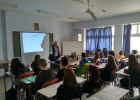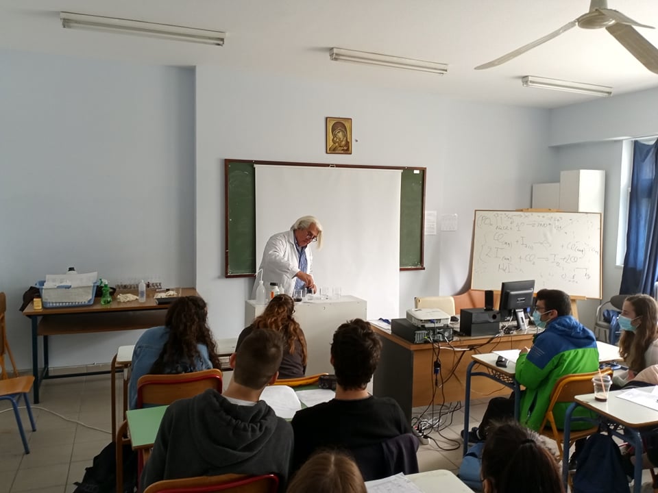 Παρουσίασε ενδιαφέροντα σημεία πάνω στη διδασκόμενη ύλη της Γ λυκείου, απάντησε σε πολλές ερωτήσεις των μαθητών και εκτέλεσε δύο πειράματα σχετικά με τη διδασκόμενη ύλη.