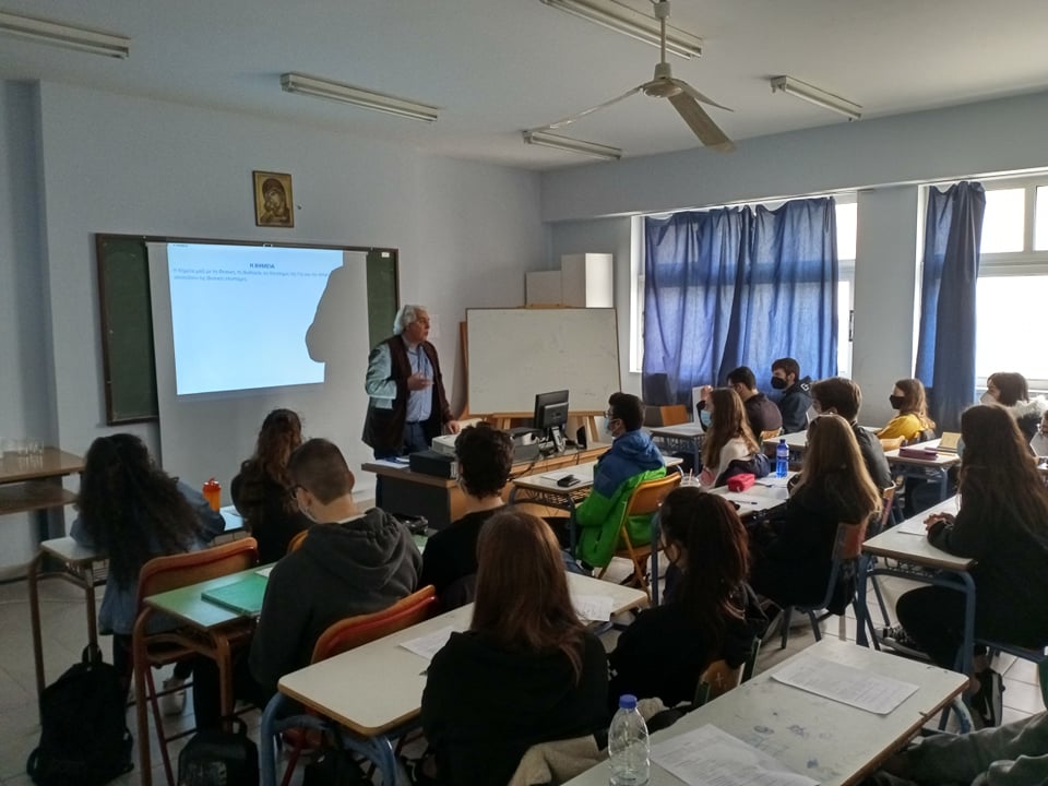 Ο καθηγητής του Χημικού Τμήματος του ΕΚΠΑ Κώστας Μεθενίτης για 4 ώρες κράτησε αμείωτο το ενδιαφέρον των μαθητών της κατεύθυνσης θετικών σπουδών και υγείας της Γ λυκείου.