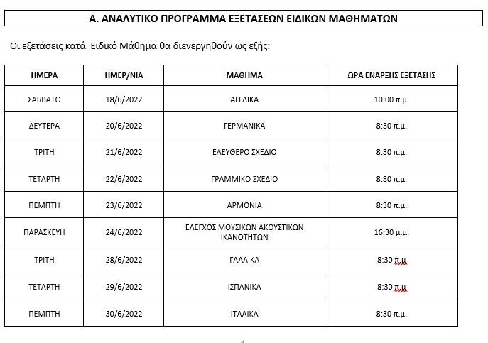 Δείτε εδώ τα εξεταστικά κέντρα για τα ειδικά μαθήματα.