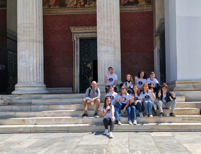 Το πρωί ξυπνήσαμε με μεγαλύτερο εφόδιό μας τον απέραντο ενθουσιασμό μας. Φτάνοντας στο Καποδιστριακό Πανεπιστήμιο Αθηνών, πρώτο πράγμα που κάναμε ήταν να απαθανατίσουμε την στιγμή.