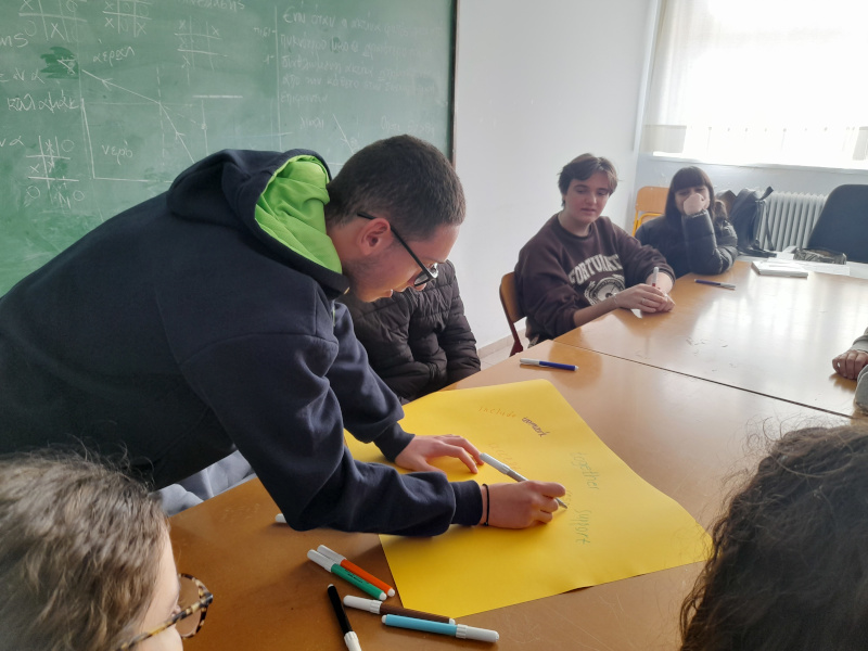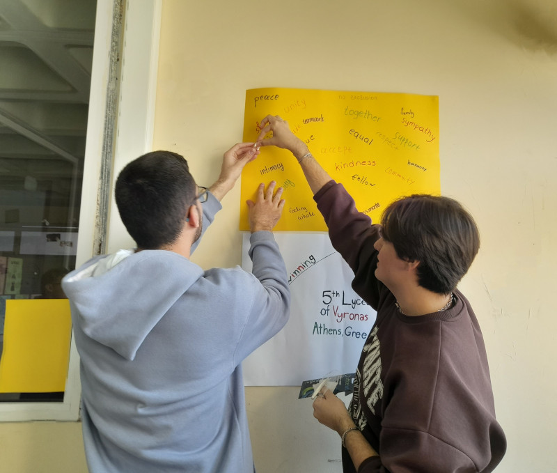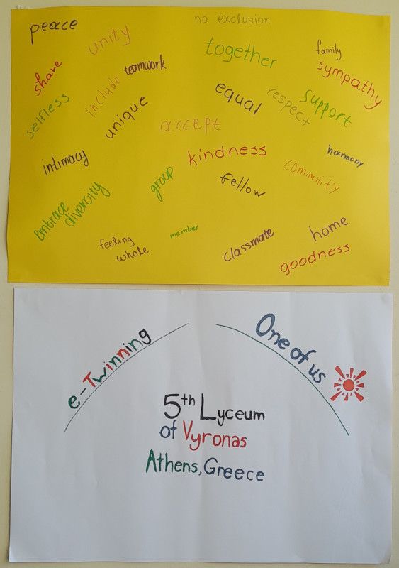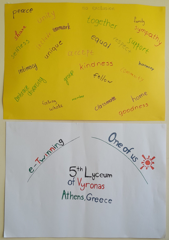 Για το μήνα Φεβρουάριο οι Ε-twinners μαζί με τους συμμαθητές τους από τα συνεργαζόμενα Ευρωπαϊκά σχολεία έχουν ως συνεργατική δραστηριότητα να δημιουργήσουν ένα λεξικό συμπερίληψης. Λέξεις ή φράσεις που μας βοηθούν να νιώσουμε μαζί ως μέλη μιας ομάδας, μικρής ή μεγάλης. Οι E-twinners του σχολείου μας συναντήθηκαν και έγραψαν όλες τις δικές τους λέξεις σε ένα μεγάλο poster, το οποίο και τοποθέτησαν στην Culture Corner. Οι λέξεις που χρησιμοποίησαν παρουσιάστηκαν μέσω Canva στην πλατφόρμα του Twinspace, μαζί με τις εργασίες των υπόλοιπων σχολείων.