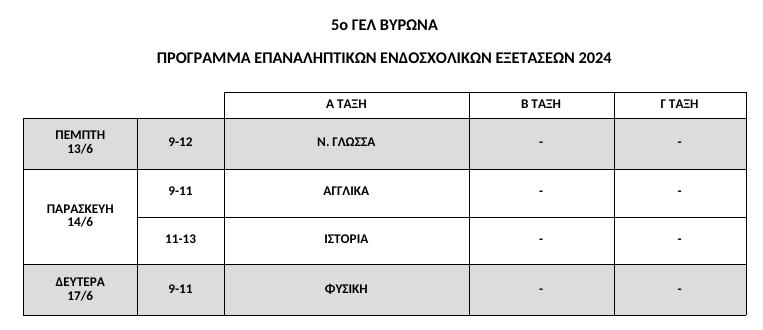 Προγράμματα Εξετάσεων Ιουνίου και Σεπτεμβρίου