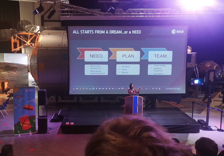 Παρακολουθήσαμε ομιλίες και συζητήσαμε με κορυφαίους μηχανικούς της ESA, οι οποίοι πέρα από τις θαυμαστές στορίες για τα τεχνολογικά επιτεύγματά τους, το μήνυμα που μας πέρασαν ήταν "όσα εμείς μελετούμε και σχεδιάζουμε τώρα για να υλοποιηθούν τα επόμενα χρόνια, θα είστε εσείς που θα βρίσκεστε εδώ και θα τα υλοποιήσετε".