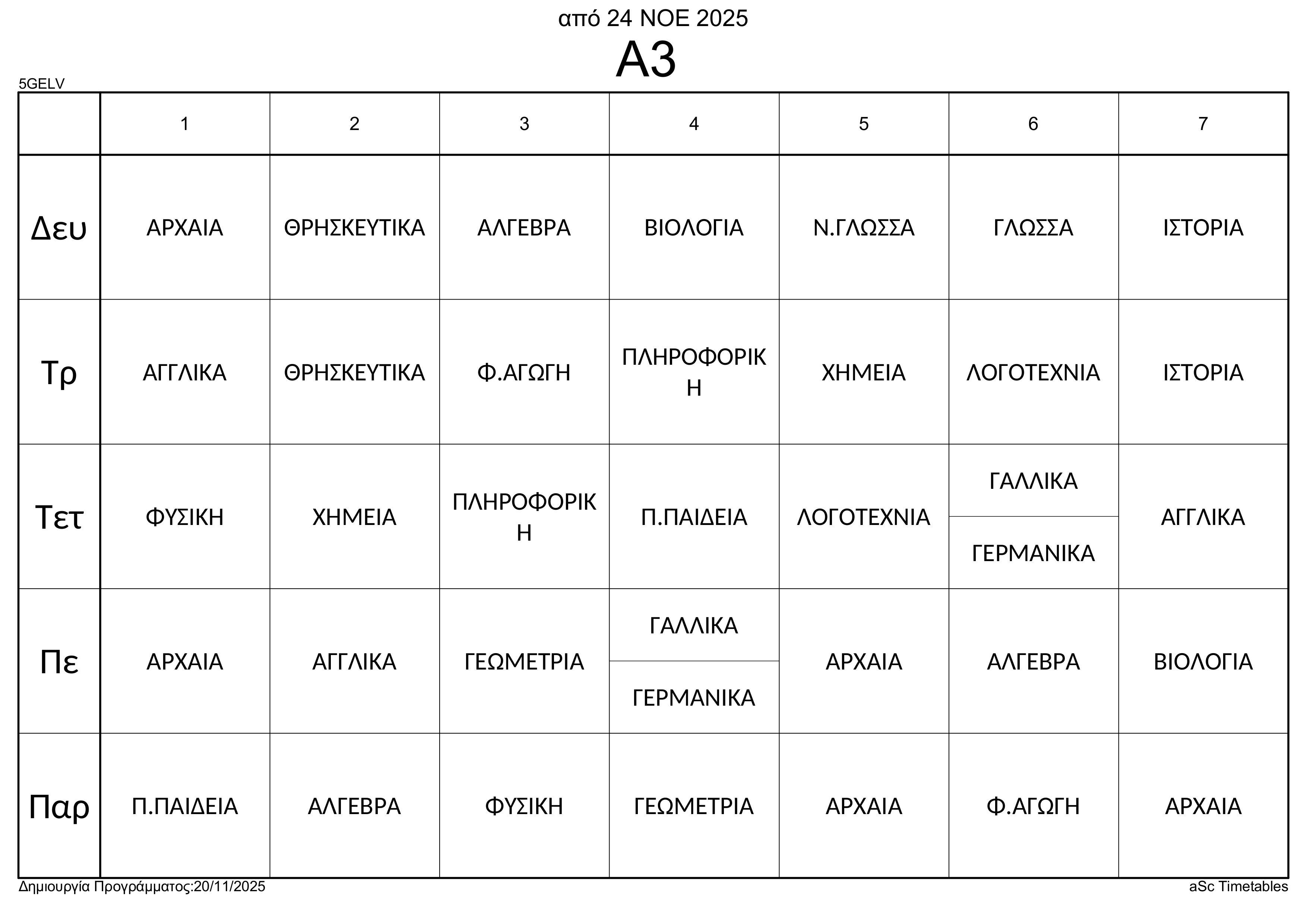 Δείτε τα ωρολόγια προγράμματα που θα ισχύσουν από 24 Νοεμβρίου 2025.