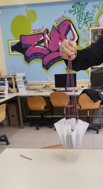 Πρέπει να σχεδιαστεί και να ραφτεί ένα αλεξίπτωτο που θα βοηθήσει το δορυφοράκι να προσγειωθεί με ασφάλεια. Και να αποδειχτεί ότι το αλεξίπτωτο αντέχει δύναμη 50Ν.