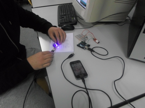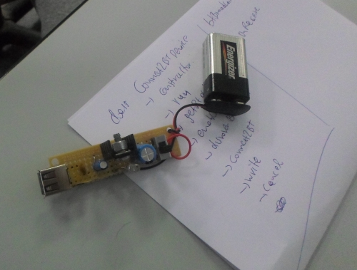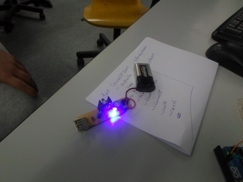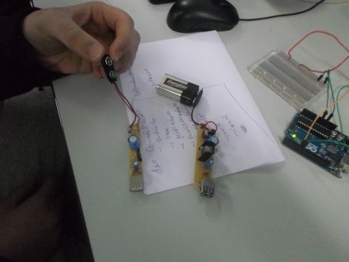 Α! και μην ξεχάσω: είχαμε την πρώτη σοβαρή ... διαμάχη που απείλησε να διαιρέσει το v-space σε δύο στρατόπεδα: φορτιστής Θανάση εναντίον φορτιστή Βαγγέλη!! Δεν ξέραμε ποιου το μέρος να πάρουμε! Βλέπετε, είναι σημαντικό πράγμα να έχεις στη διάθεσή σου έναν φορτιστή που να φορτίζει από arduino μέχρι κινητό. Κάναμε την καρδιά μας πέτρα και συνδέσαμε τον φορτιστή σε ένα arduino: sucess!! Μετά, δοκιμάσαμε να φορτίσουμε ένα κινητό: ... καλά τίνος είναι αυτό το κινητό... δεν καταλαβαίνει τίποτα...
